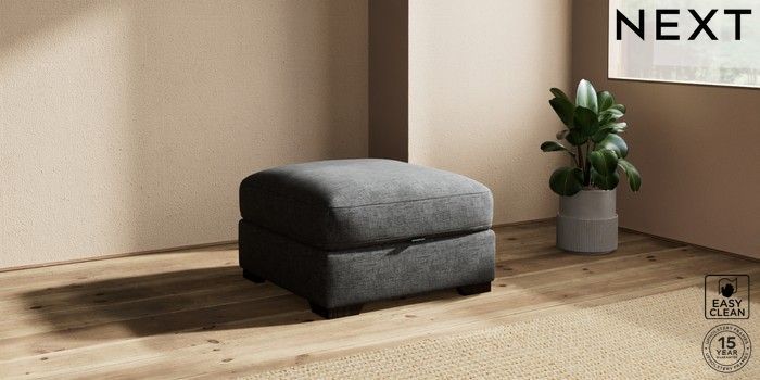 7.2.10 Houghton Deep Relaxed Sit Storage Footstool Boucle Weave Easy Clean Charcoal Grey Square Angle - Dark | Made Click here to use our website with more accessibility support, for example screen readers