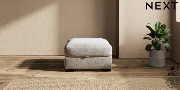 7.2.10 Houghton Deep Relaxed Sit Storage Footstool Chunky Boucle Easy Clean Dove Square Angle - Dark | Made Click here to use our website with more accessibility support, for example screen readers