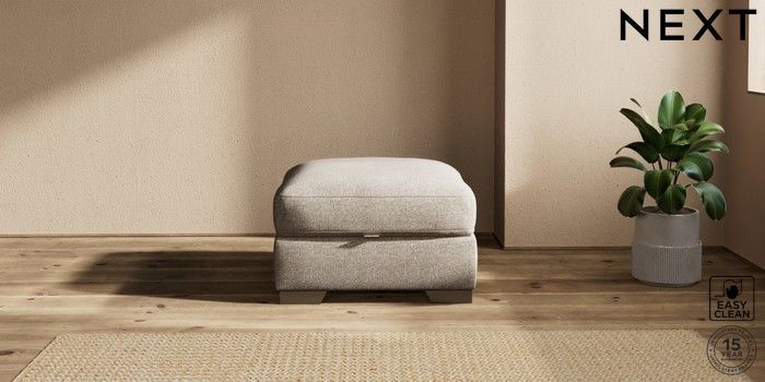 7.2.10 Houghton Deep Relaxed Sit Storage Footstool Chunky Boucle Easy Clean Mid Natural Square Angle - Gunmetal | Made Click here to use our website with more accessibility support, for example screen readers