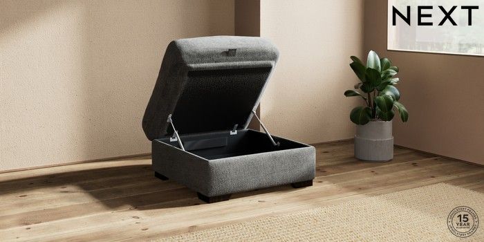 7.2.10 Houghton Deep Relaxed Sit Storage Footstool Chunky Chenille Dark Grey Square Angle - Dark | Made Click here to use our website with more accessibility support, for example screen readers