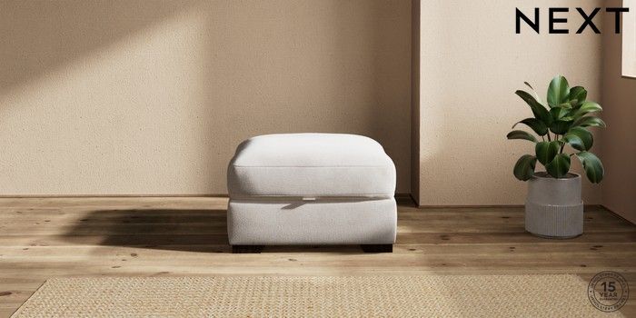 7.2.10 Houghton Deep Relaxed Sit Storage Footstool Chunky Chenille Oyster Square Angle - Dark | Made Click here to use our website with more accessibility support, for example screen readers