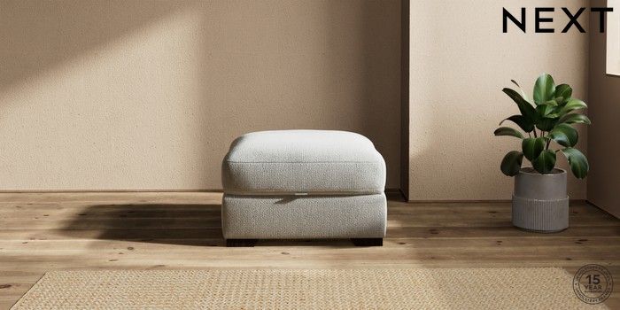 7.2.10 Houghton Deep Relaxed Sit Storage Footstool Chunky Texture Dove Square Angle - Dark | Made Click here to use our website with more accessibility support, for example screen readers