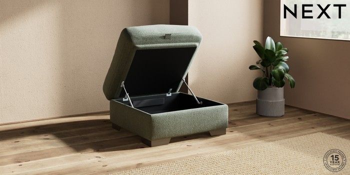 7.2.10 Houghton Deep Relaxed Sit Storage Footstool Chunky Texture Mid Forest Green Square Angle - Gunmetal | Made Click here to use our website with more accessibility support, for example screen readers