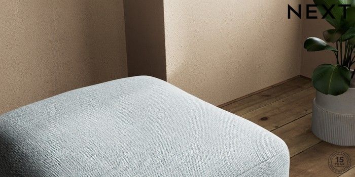 7.2.10 Houghton Deep Relaxed Sit Storage Footstool Chunky Weave Mid Blue Square Angle - Brushed Brass | Made Click here to use our website with more accessibility support, for example screen readers