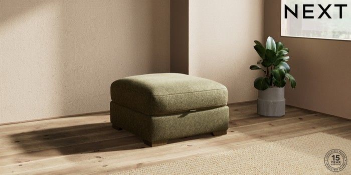 7.2.10 Houghton Deep Relaxed Sit Storage Footstool Cotswold Chenille Dark Green Square Angle - Mid | Made Click here to use our website with more accessibility support, for example screen readers