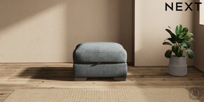 7.2.10 Houghton Deep Relaxed Sit Storage Footstool Cotswold Chenille Dark Grey Square Angle - Gunmetal | Made Click here to use our website with more accessibility support, for example screen readers