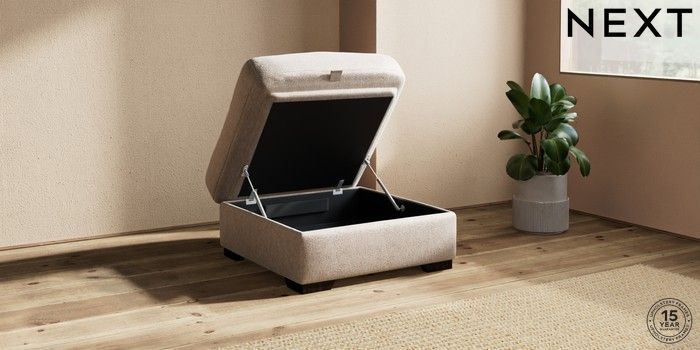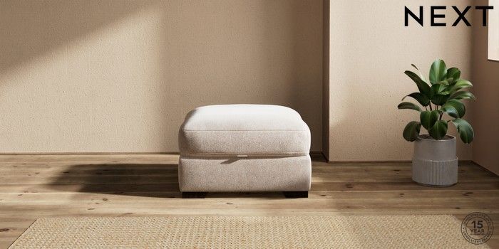 7.2.10 Houghton Deep Relaxed Sit Storage Footstool Cotswold Chenille Light Natural Square Angle - Dark | Made Click here to use our website with more accessibility support, for example screen readers