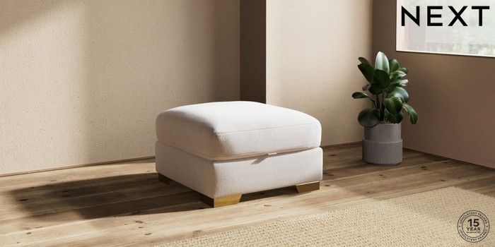 7.2.10 Houghton Deep Relaxed Sit Storage Footstool Cotswold Chenille Oyster Square Angle - Brushed Brass | Made Click here to use our website with more accessibility support, for example screen readers