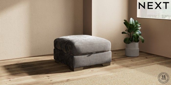 7.2.10 Houghton Deep Relaxed Sit Storage Footstool Distressed Velour French Grey Square Angle - Gunmetal | Made Click here to use our website with more accessibility support, for example screen readers