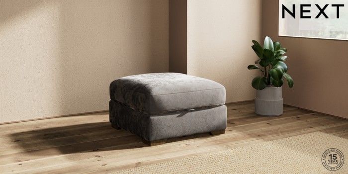 7.2.10 Houghton Deep Relaxed Sit Storage Footstool Distressed Velour French Grey Square Angle - Mid | Made Click here to use our website with more accessibility support, for example screen readers