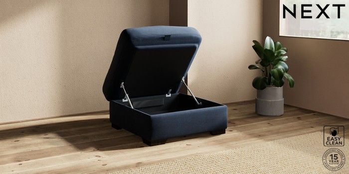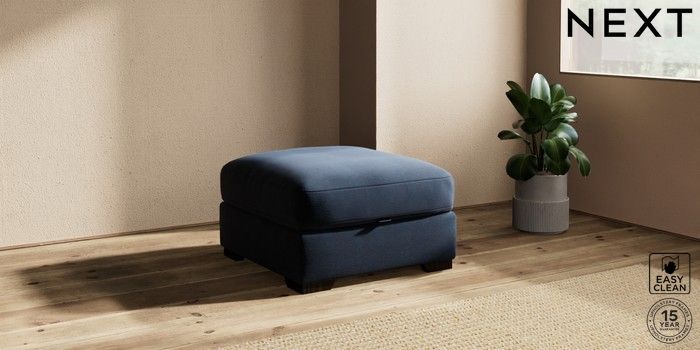 7.2.10 Houghton Deep Relaxed Sit Storage Footstool Fine Chenille Easy Clean Dark Navy Blue Square Angle - Dark | Made Click here to use our website with more accessibility support, for example screen readers