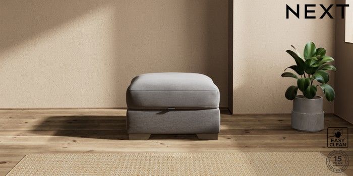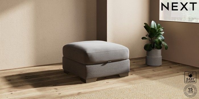 7.2.10 Houghton Deep Relaxed Sit Storage Footstool Fine Chenille Easy Clean Dark Smoke Grey Square Angle - Gunmetal | Made Click here to use our website with more accessibility support, for example screen readers