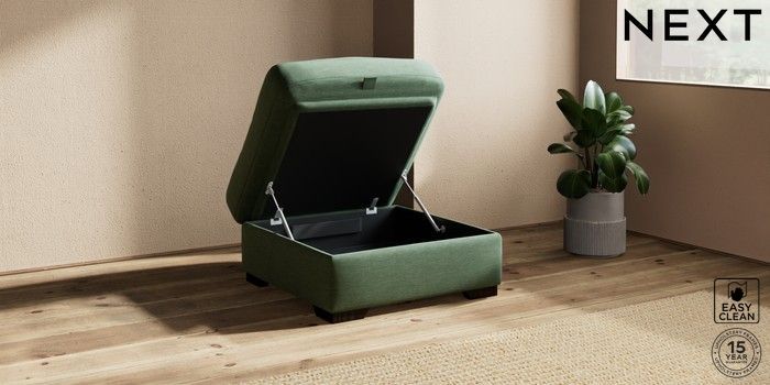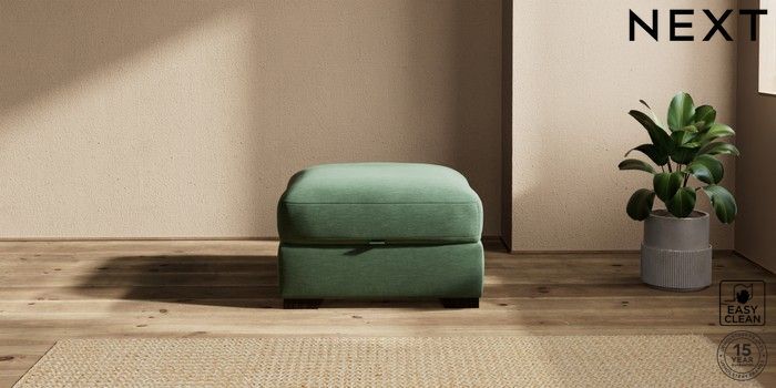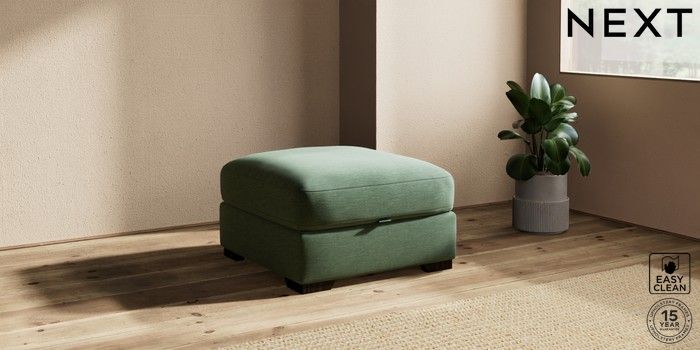 7.2.10 Houghton Deep Relaxed Sit Storage Footstool Fine Chenille Easy Clean Mid Khaki Green Square Angle - Dark | Made Click here to use our website with more accessibility support, for example screen readers