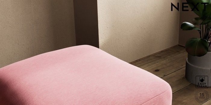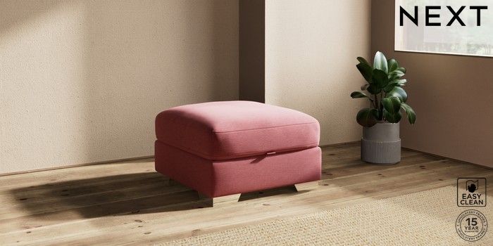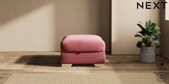 7.2.10 Houghton Deep Relaxed Sit Storage Footstool Fine Chenille Easy Clean Mid Pink Square Angle - Chrome Metal | Made Click here to use our website with more accessibility support, for example screen readers