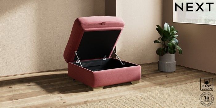 7.2.10 Houghton Deep Relaxed Sit Storage Footstool Fine Chenille Easy Clean Mid Pink Square Angle - Light | Made Click here to use our website with more accessibility support, for example screen readers