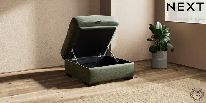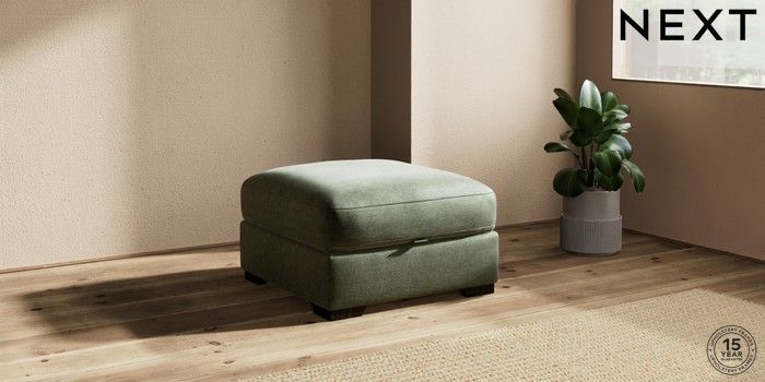 7.2.10 Houghton Deep Relaxed Sit Storage Footstool Luxe Chenille Mid Green Square Angle - Dark | Made Click here to use our website with more accessibility support, for example screen readers