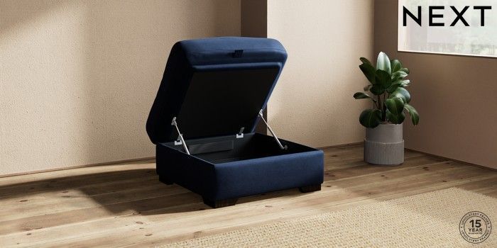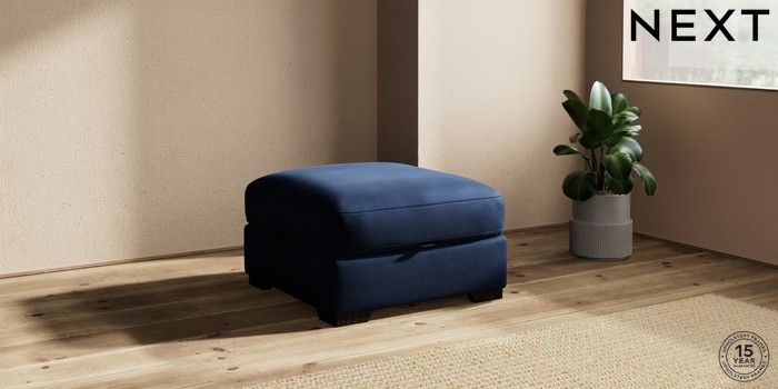 7.2.10 Houghton Deep Relaxed Sit Storage Footstool Luxe Chenille Navy Blue Square Angle - Dark | Made Click here to use our website with more accessibility support, for example screen readers