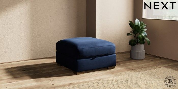 7.2.10 Houghton Deep Relaxed Sit Storage Footstool Luxe Chenille Navy Blue Square Angle - Mid | Made Click here to use our website with more accessibility support, for example screen readers