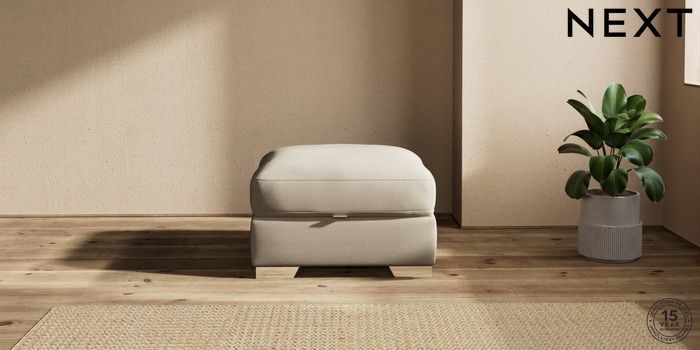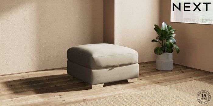 7.2.10 Houghton Deep Relaxed Sit Storage Footstool Natural Mix Light Natural Square Angle - Chrome Metal | Made Click here to use our website with more accessibility support, for example screen readers