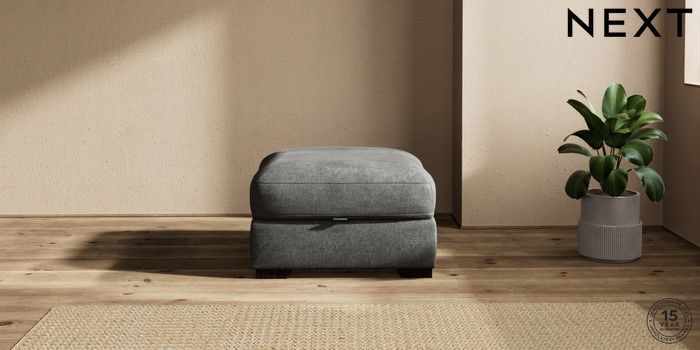 7.2.10 Houghton Deep Relaxed Sit Storage Footstool Plush Chenille Dark Grey Square Angle - Dark | Made Click here to use our website with more accessibility support, for example screen readers