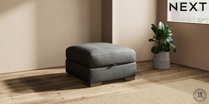 7.2.10 Houghton Deep Relaxed Sit Storage Footstool Plush Chenille Dark Grey Square Angle - Gunmetal | Made Click here to use our website with more accessibility support, for example screen readers