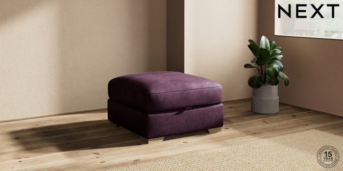 7.2.10 Houghton Deep Relaxed Sit Storage Footstool Plush Chenille Dark Plum Purple Square Angle - Light | Made Click here to use our website with more accessibility support, for example screen readers