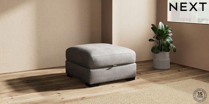7.2.10 Houghton Deep Relaxed Sit Storage Footstool Plush Chenille Light Grey Square Angle - Dark | Made Click here to use our website with more accessibility support, for example screen readers