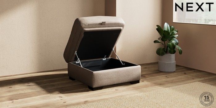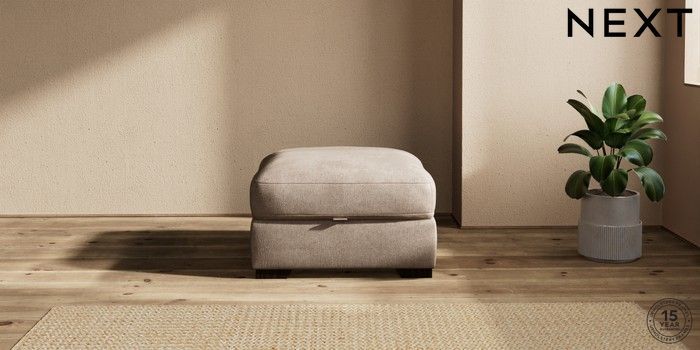 7.2.10 Houghton Deep Relaxed Sit Storage Footstool Plush Chenille Mid Natural Square Angle - Dark | Made Click here to use our website with more accessibility support, for example screen readers