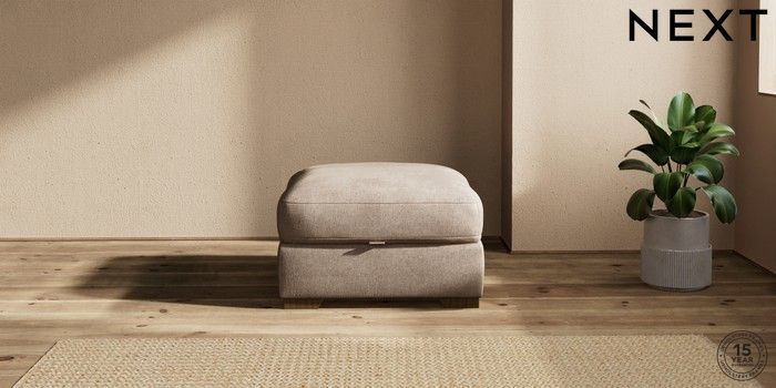 7.2.10 Houghton Deep Relaxed Sit Storage Footstool Plush Chenille Mid Natural Square Angle - Mid | Made Click here to use our website with more accessibility support, for example screen readers