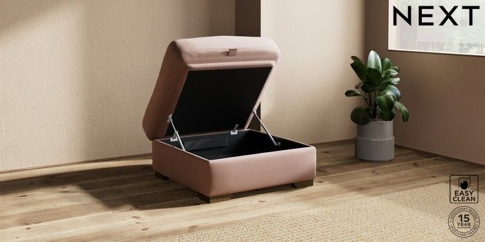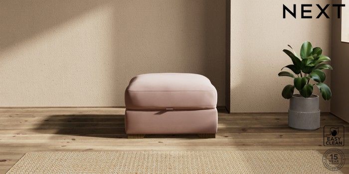 7.2.10 Houghton Deep Relaxed Sit Storage Footstool Plush Velvet Easy Clean Mid Natural Square Angle - Mid | Made Click here to use our website with more accessibility support, for example screen readers