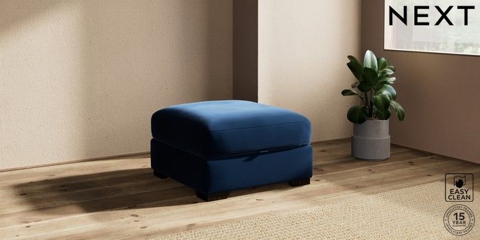 7.2.10 Houghton Deep Relaxed Sit Storage Footstool Plush Velvet Easy Clean Navy Blue Square Angle - Dark | Made Click here to use our website with more accessibility support, for example screen readers