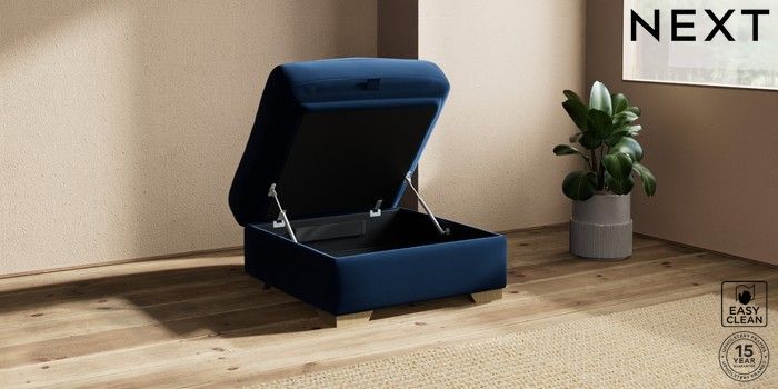 7.2.10 Houghton Deep Relaxed Sit Storage Footstool Plush Velvet Easy Clean Navy Blue Square Angle - Light | Made Click here to use our website with more accessibility support, for example screen readers