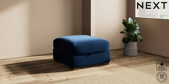 7.2.10 Houghton Deep Relaxed Sit Storage Footstool Plush Velvet Easy Clean Navy Blue Square Angle - Mid | Made Click here to use our website with more accessibility support, for example screen readers