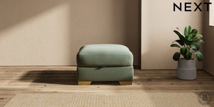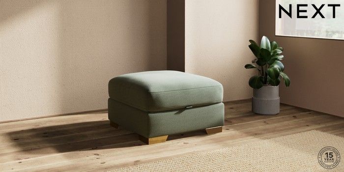 7.2.10 Houghton Deep Relaxed Sit Storage Footstool Relaxed Linen Look Dark Green Square Angle - Brushed Brass | Made Click here to use our website with more accessibility support, for example screen readers