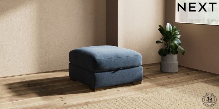 7.2.10 Houghton Deep Relaxed Sit Storage Footstool Ripple Chenille Dark Blue Square Angle - Mid | Made Click here to use our website with more accessibility support, for example screen readers