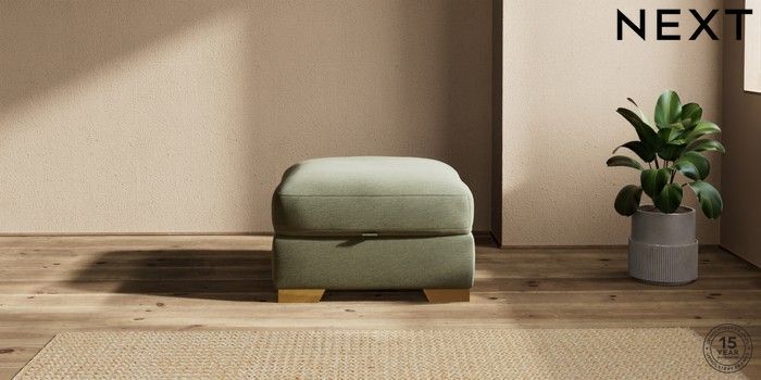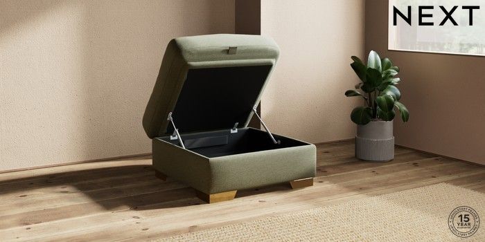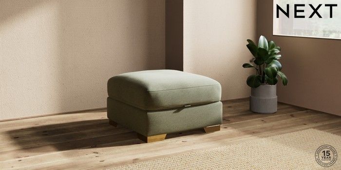7.2.10 Houghton Deep Relaxed Sit Storage Footstool Ripple Chenille Mid Moss Green Square Angle - Brushed Brass | Made Click here to use our website with more accessibility support, for example screen readers