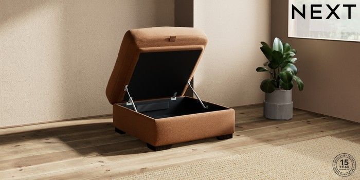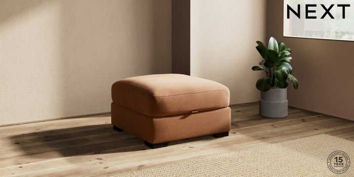 7.2.10 Houghton Deep Relaxed Sit Storage Footstool Ripple Chenille Mid Rust Brown Square Angle - Dark | Made Click here to use our website with more accessibility support, for example screen readers