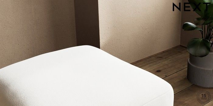 7.2.10 Houghton Deep Relaxed Sit Storage Footstool Ripple Chenille Oyster Square Angle - Chrome Metal | Made Click here to use our website with more accessibility support, for example screen readers