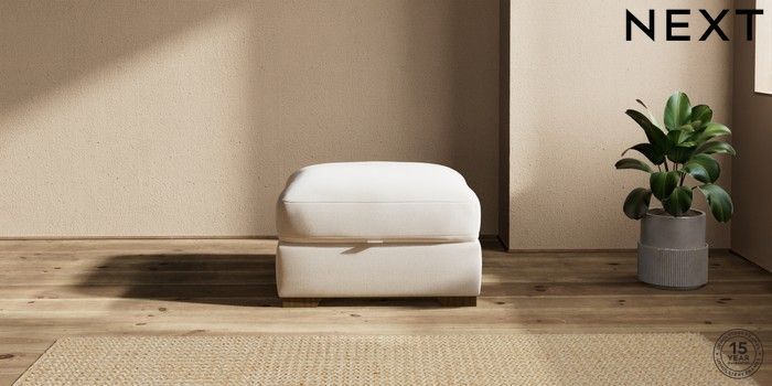 7.2.10 Houghton Deep Relaxed Sit Storage Footstool Studio Chenille Oyster Square Angle - Mid | Made Click here to use our website with more accessibility support, for example screen readers