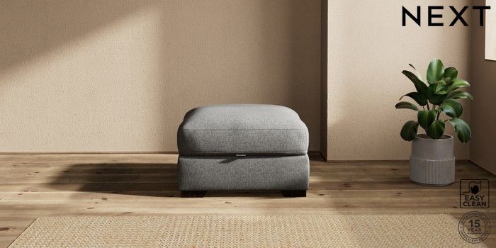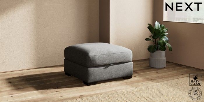 7.2.10 Houghton Deep Relaxed Sit Storage Footstool Tweedy Blend Easy Clean Dark Grey Square Angle - Dark | Made Click here to use our website with more accessibility support, for example screen readers