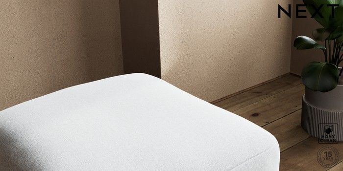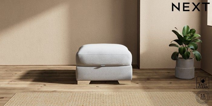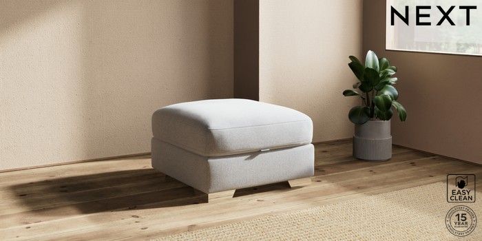 7.2.10 Houghton Deep Relaxed Sit Storage Footstool Tweedy Blend Easy Clean Light Silver Grey Square Angle - Chrome Metal | Made Click here to use our website with more accessibility support, for example screen readers