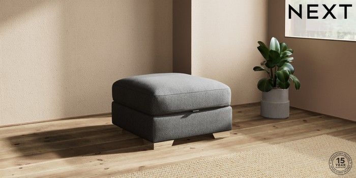7.2.10 Houghton Deep Relaxed Sit Storage Footstool Tweedy Chenille Dark Grey Square Angle - Chrome Metal | Made Click here to use our website with more accessibility support, for example screen readers