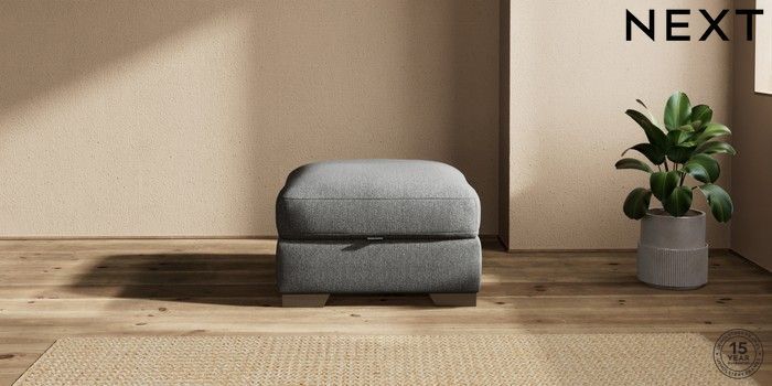 7.2.10 Houghton Deep Relaxed Sit Storage Footstool Tweedy Chenille Dark Grey Square Angle - Gunmetal | Made Click here to use our website with more accessibility support, for example screen readers