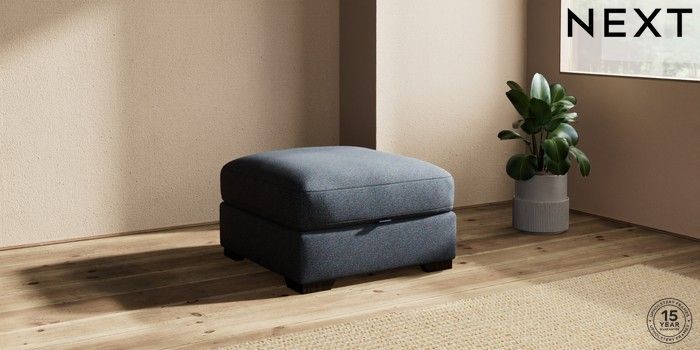 7.2.10 Houghton Deep Relaxed Sit Storage Footstool Tweedy Chenille Navy Blue Square Angle - Dark | Made Click here to use our website with more accessibility support, for example screen readers