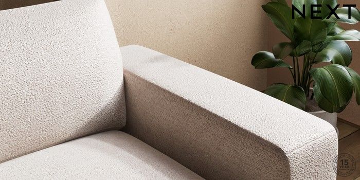 7.2.10 Houghton Deep Sit 2 Seater Small Sofa Boucle Chenille Light Natural Large Square Angle - Chrome Metal | Made Click here to use our website with more accessibility support, for example screen readers