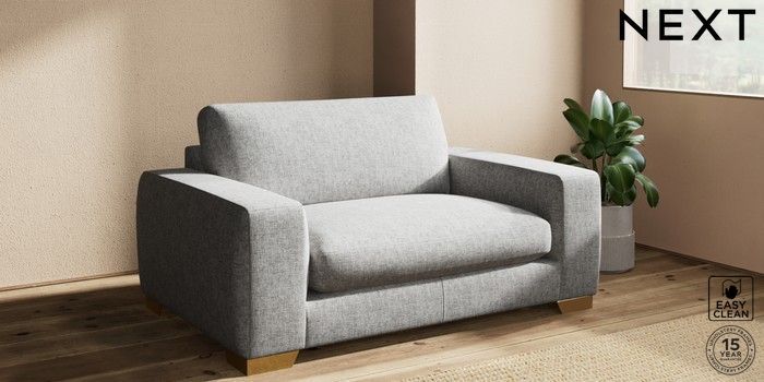 7.2.10 Houghton Deep Sit 2 Seater Small Sofa Chunky Boucle Easy Clean Light Grey Large Square Angle - Brushed Brass | Made Click here to use our website with more accessibility support, for example screen readers