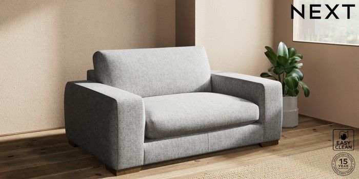 7.2.10 Houghton Deep Sit 2 Seater Small Sofa Chunky Boucle Easy Clean Light Grey Large Square Angle - Mid | Made Click here to use our website with more accessibility support, for example screen readers