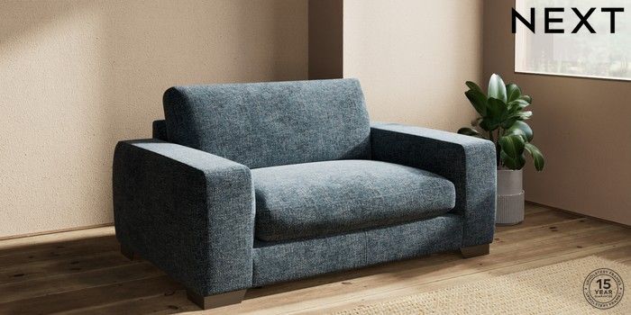 7.2.10 Houghton Deep Sit 2 Seater Small Sofa Chunky Chenille Dark Navy Blue Large Square Angle - Gunmetal | Made Click here to use our website with more accessibility support, for example screen readers