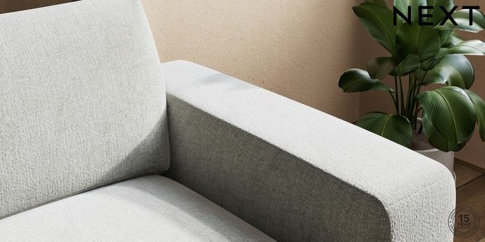 7.2.10 Houghton Deep Sit 2 Seater Small Sofa Chunky Chenille Light Grey Large Square Angle - Brushed Brass | Made Click here to use our website with more accessibility support, for example screen readers