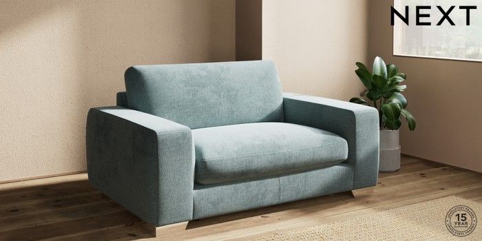 7.2.10 Houghton Deep Sit 2 Seater Small Sofa Chunky Chenille Light Teal Green Large Square Angle - Chrome Metal | Made Click here to use our website with more accessibility support, for example screen readers